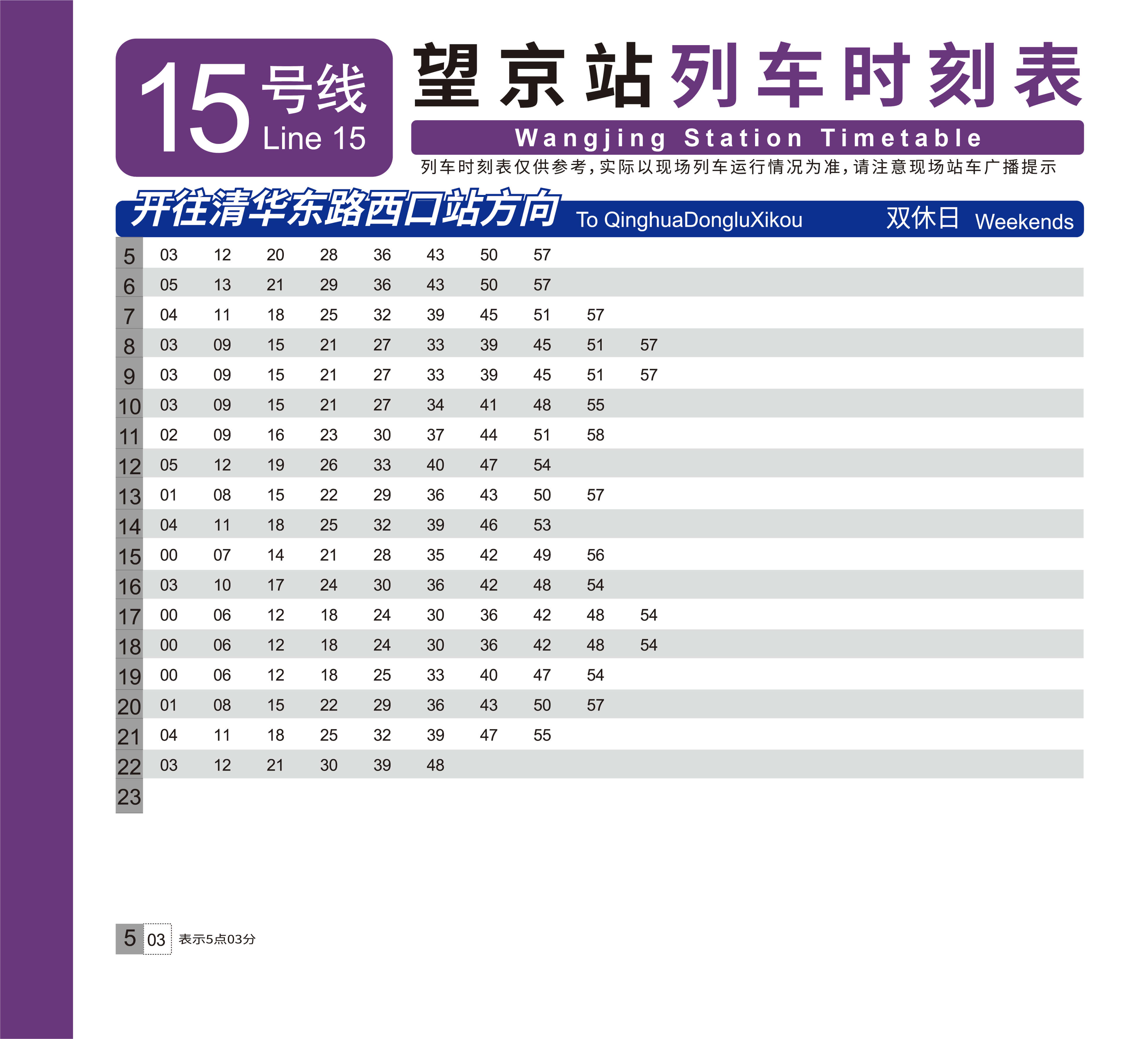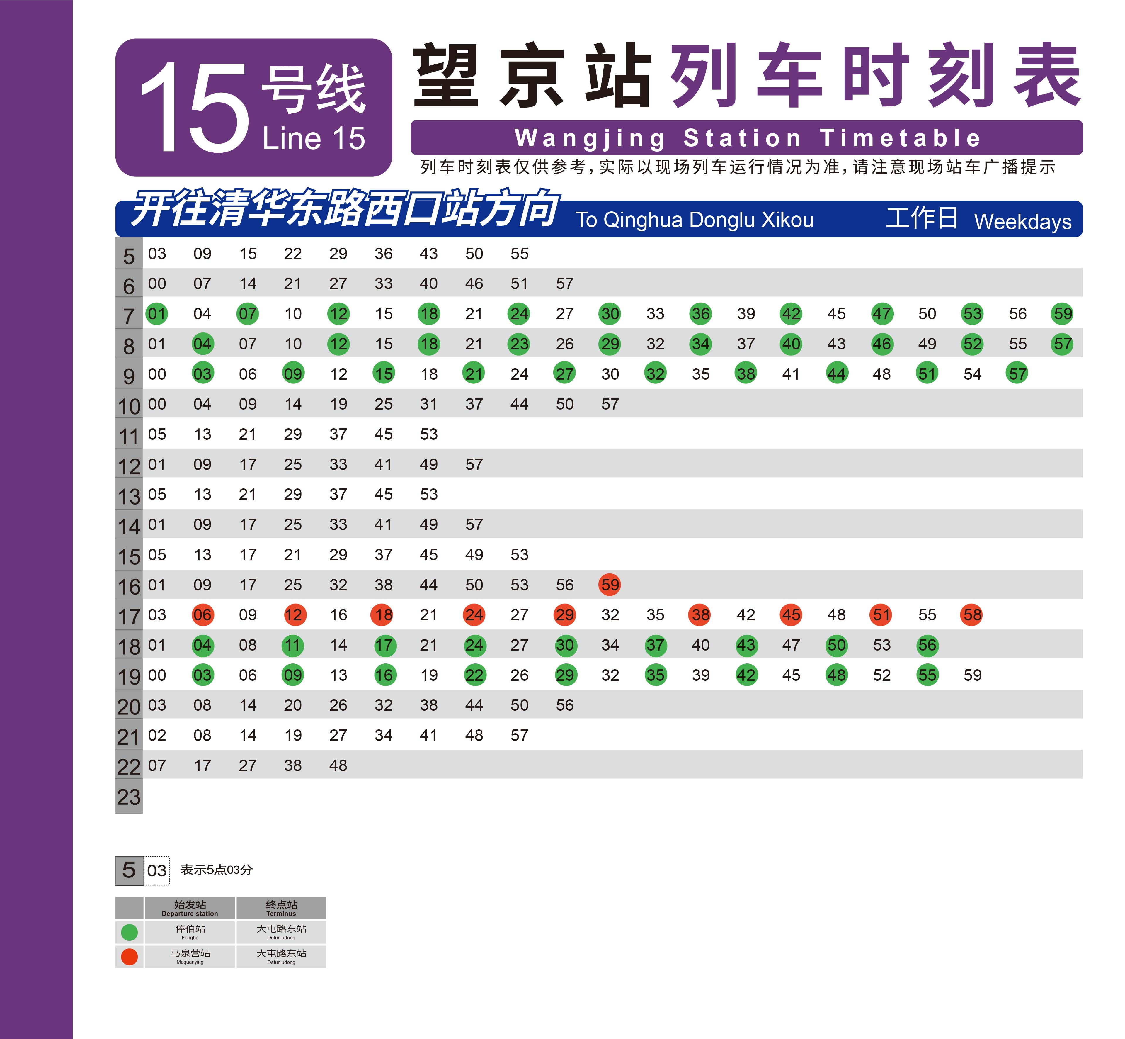 15号线 清华东路西口—俸伯首车 5:50末车 23:3515号线 俸伯—清华东路西口首车 5:03末车 22:48末车(马泉营) ——