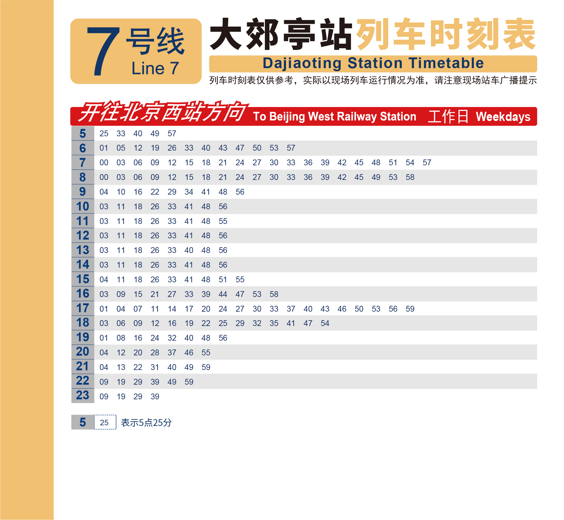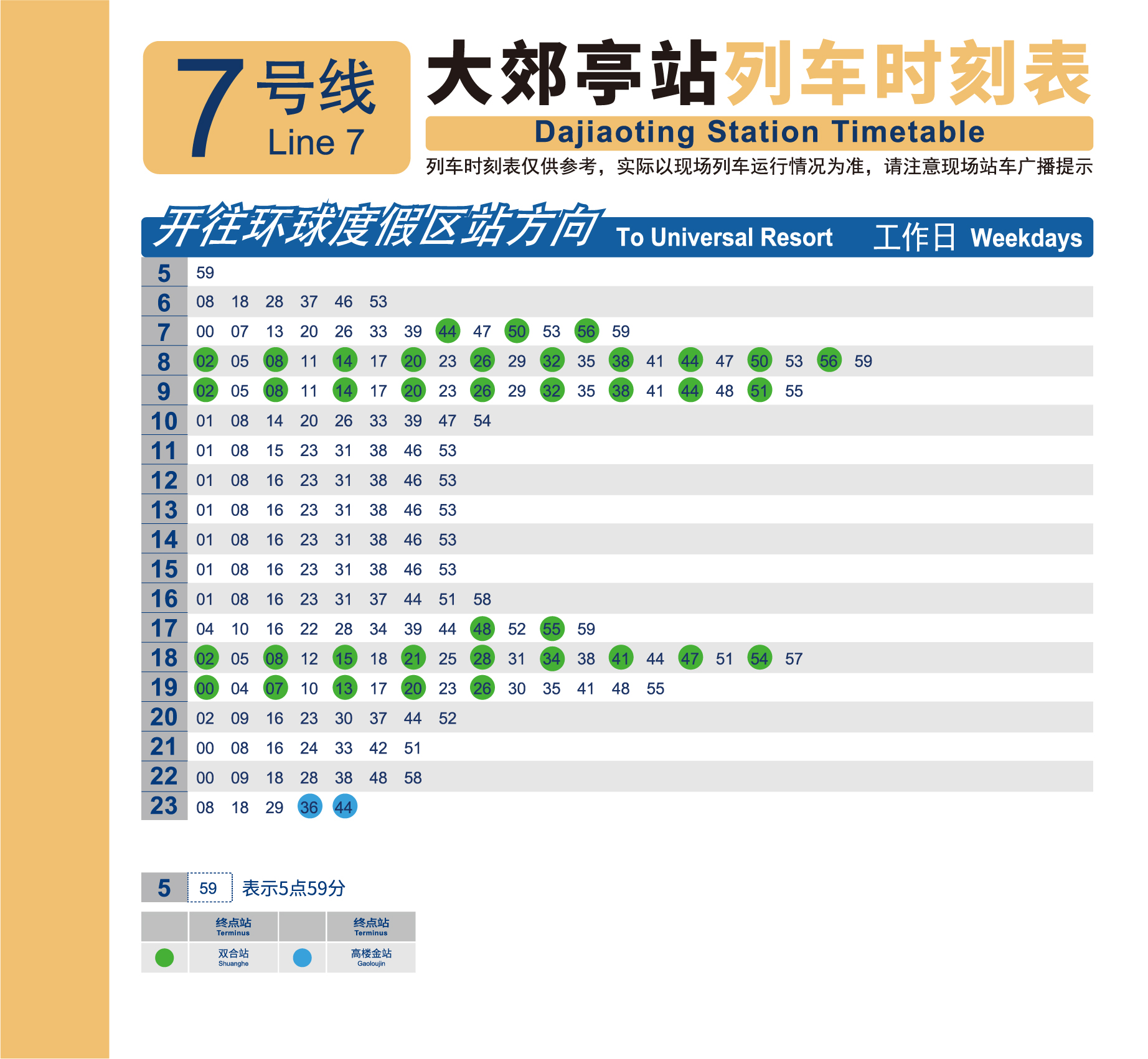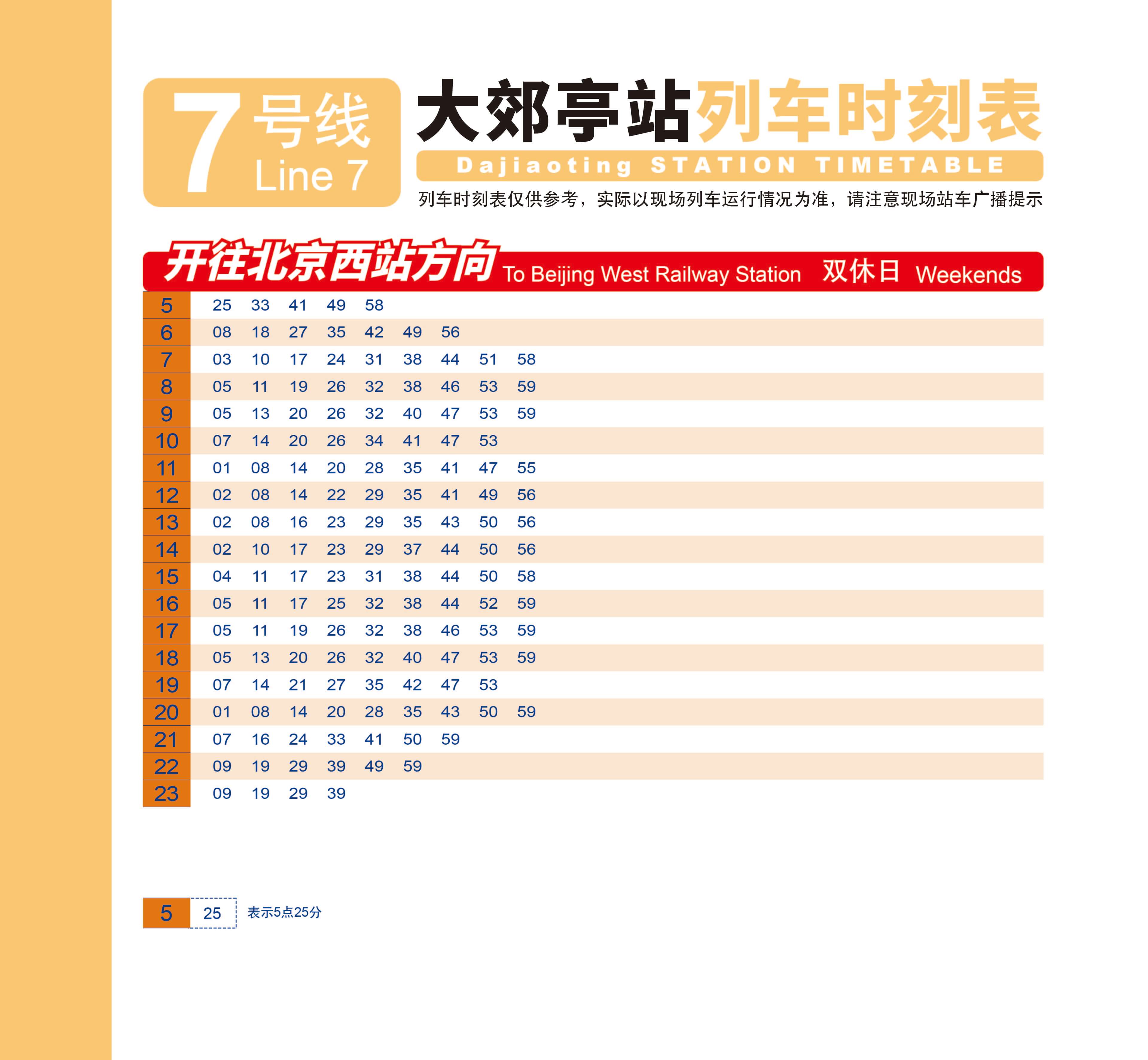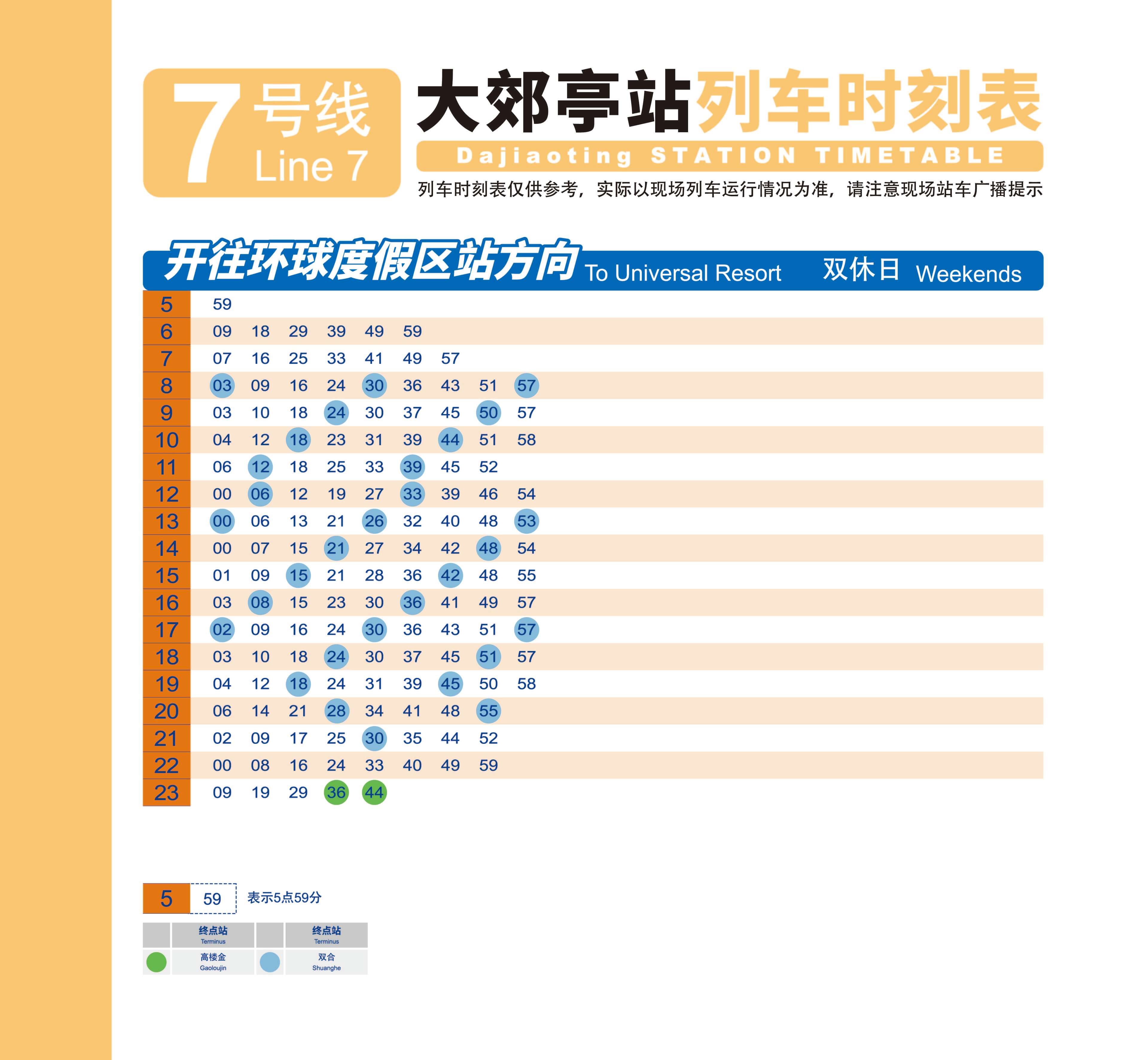 7号线 北京西站—环球度假区首车 5:59末车 23:29末车终点高楼金 23:447号线 环球度假区—北京西站首车 5:25末车 23:39