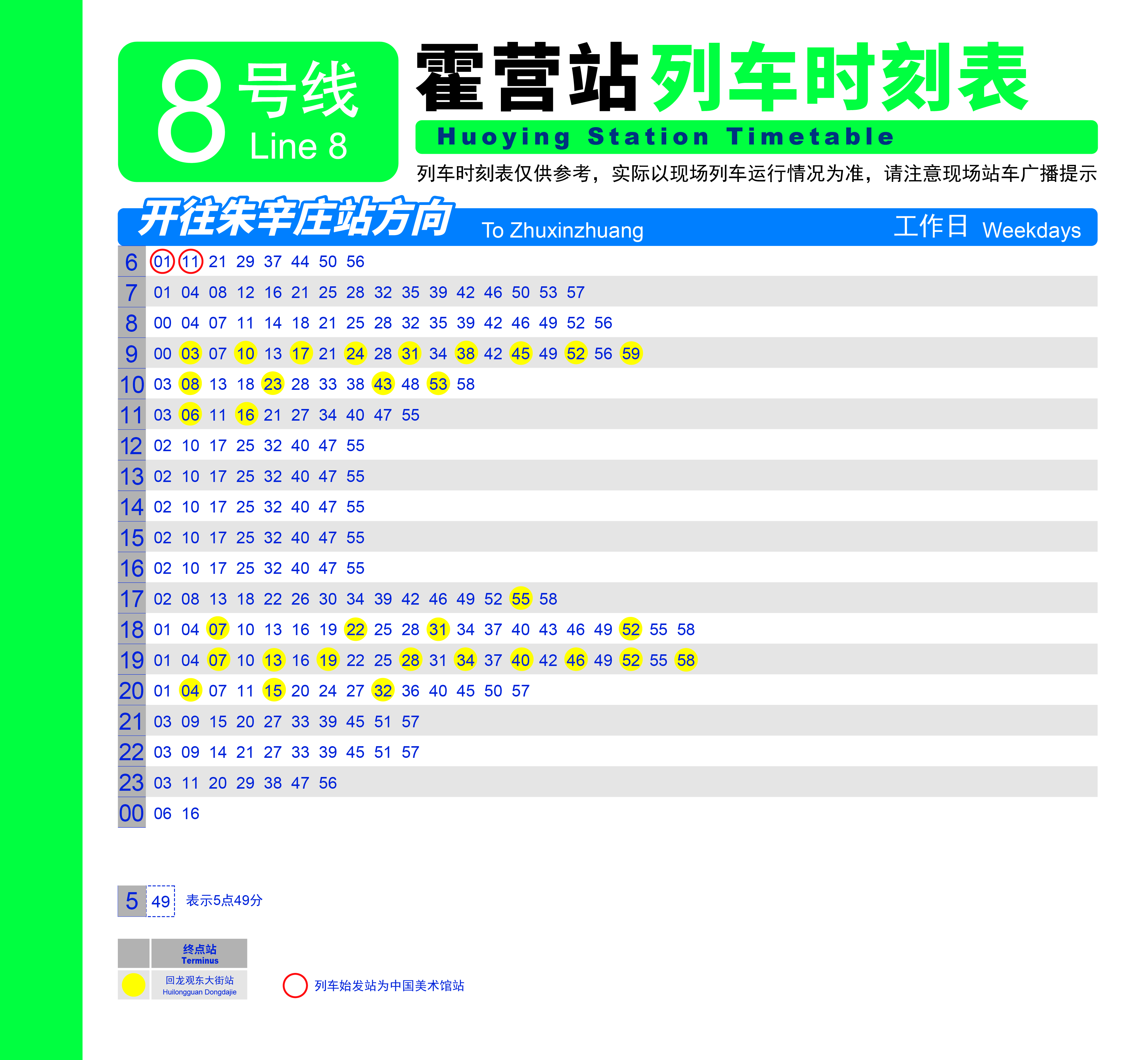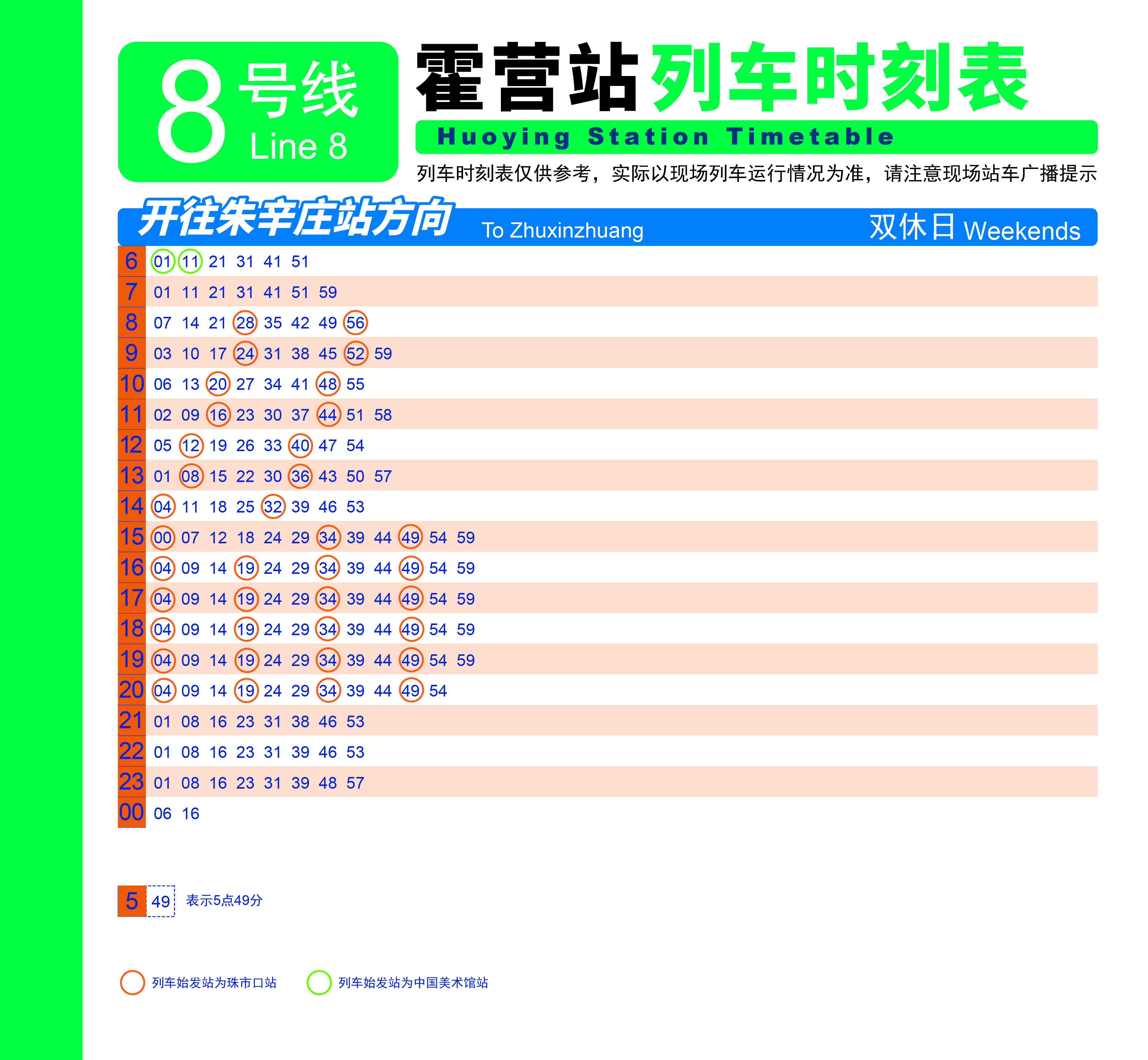 8号线 朱辛庄—瀛海首车 4:41末车 22:518号线 瀛海—朱辛庄首车 6:01末车 0:16