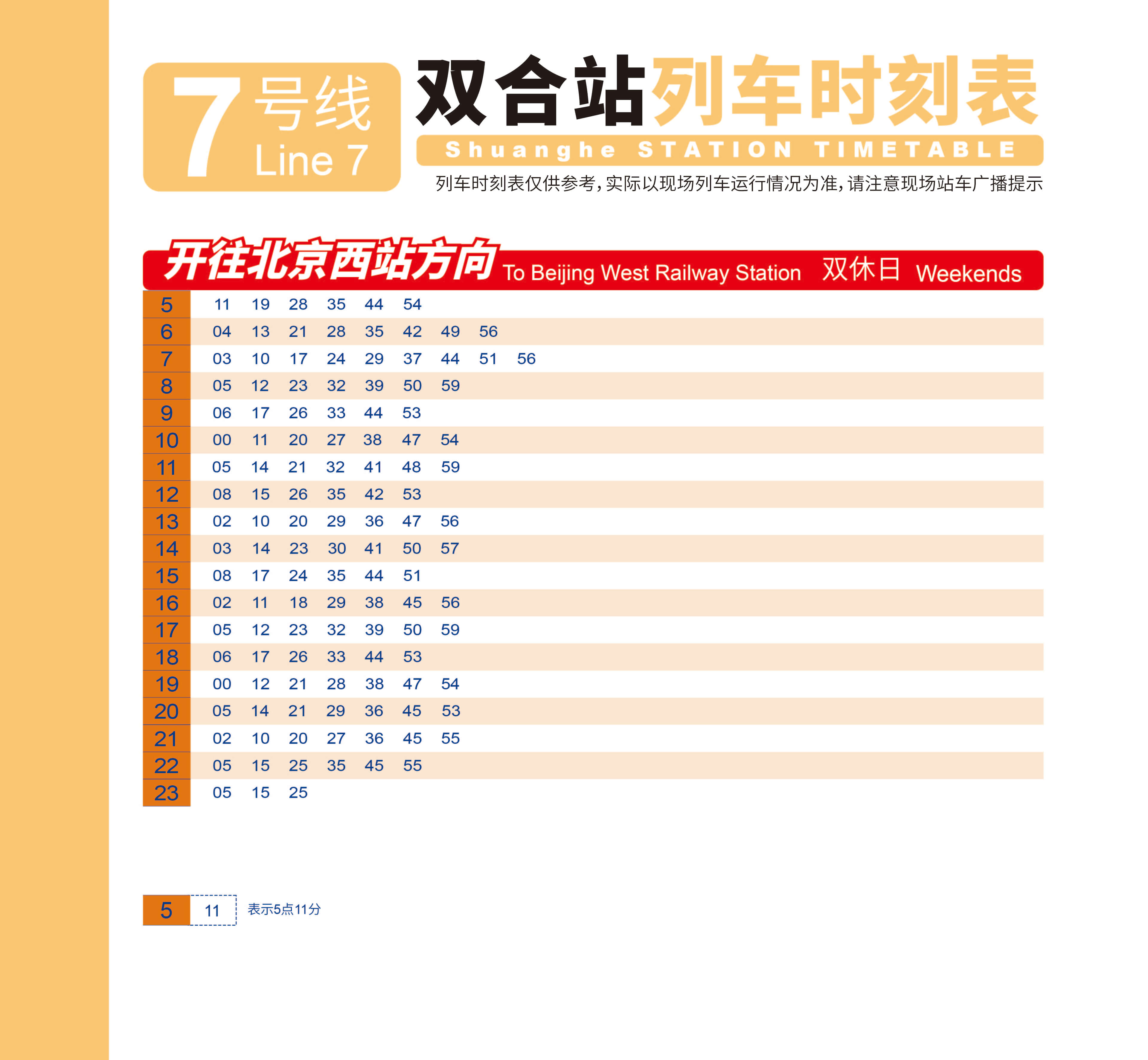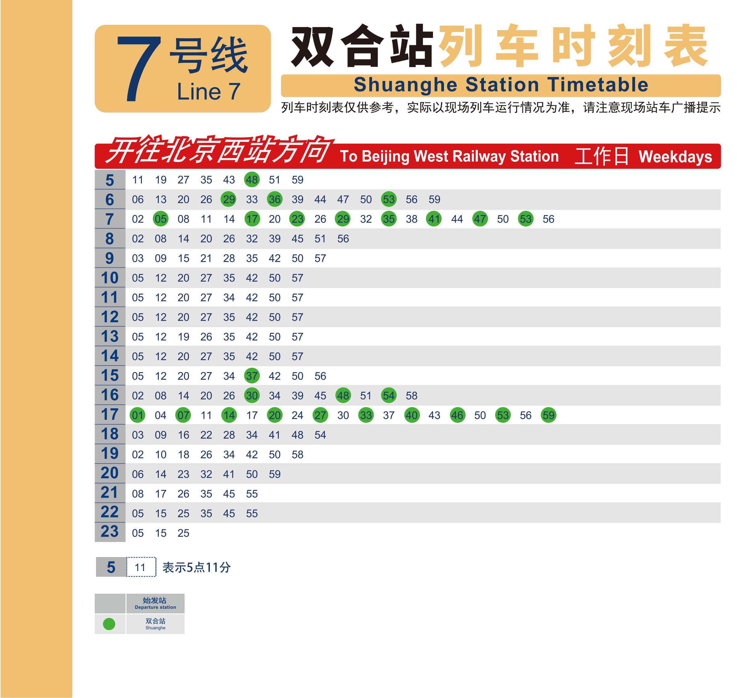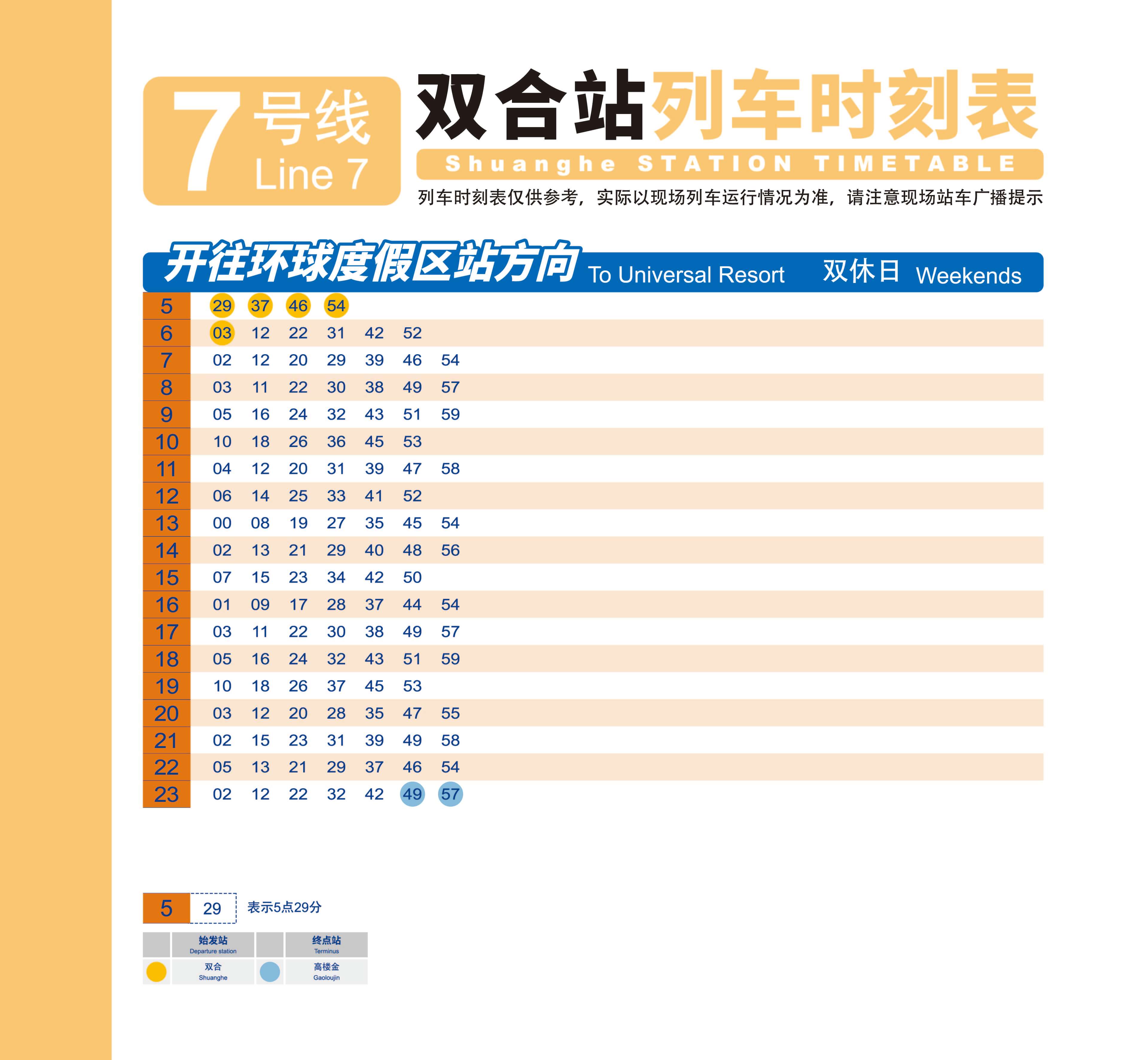 7号线 北京西站—环球度假区首车 5:29末车 23:42末车终点高楼金 23:577号线 环球度假区—北京西站首车 5:11末车 23:25
