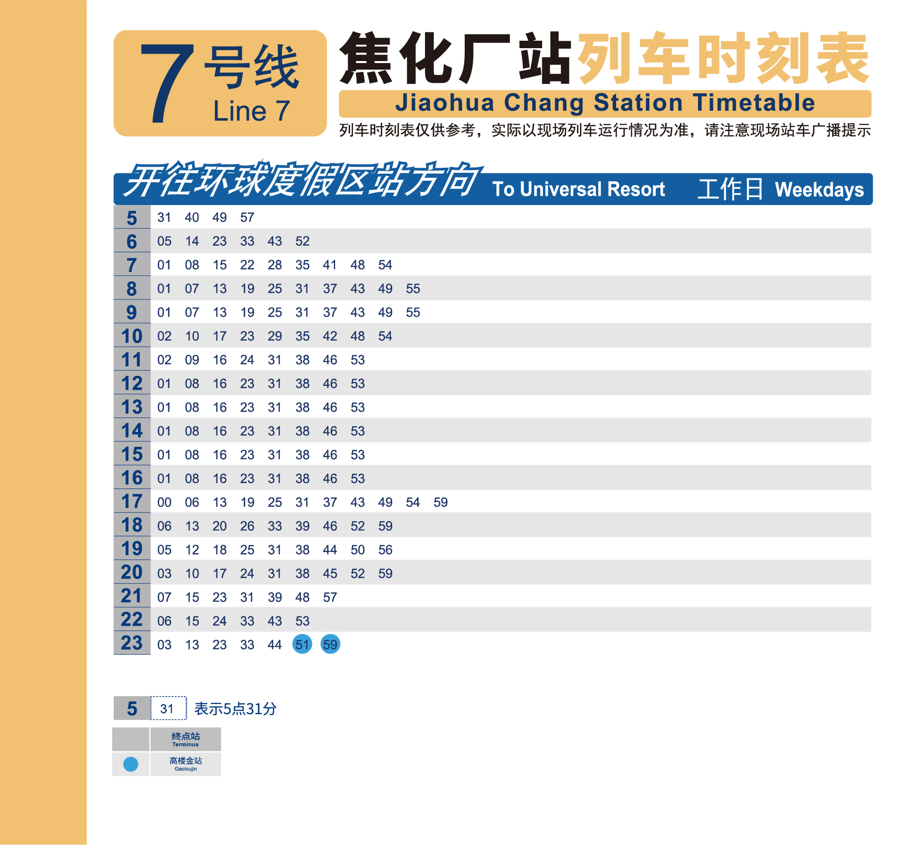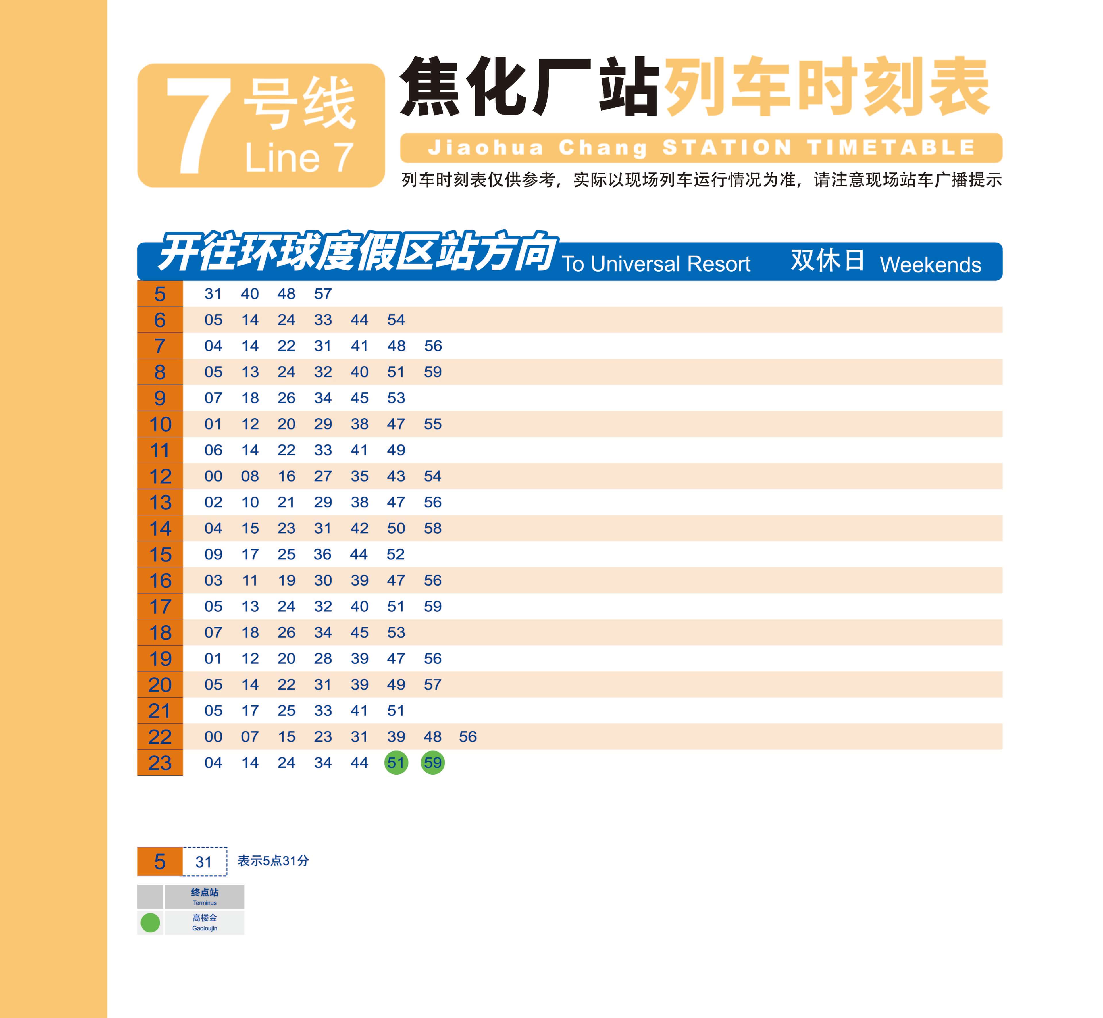 7号线 北京西站—环球度假区首车 5:31末车 23:44末车终点高楼金 23:597号线 环球度假区—北京西站首车 5:09末车 23:23