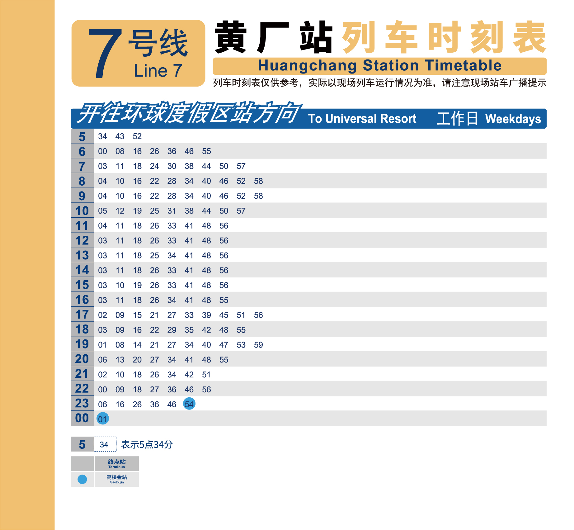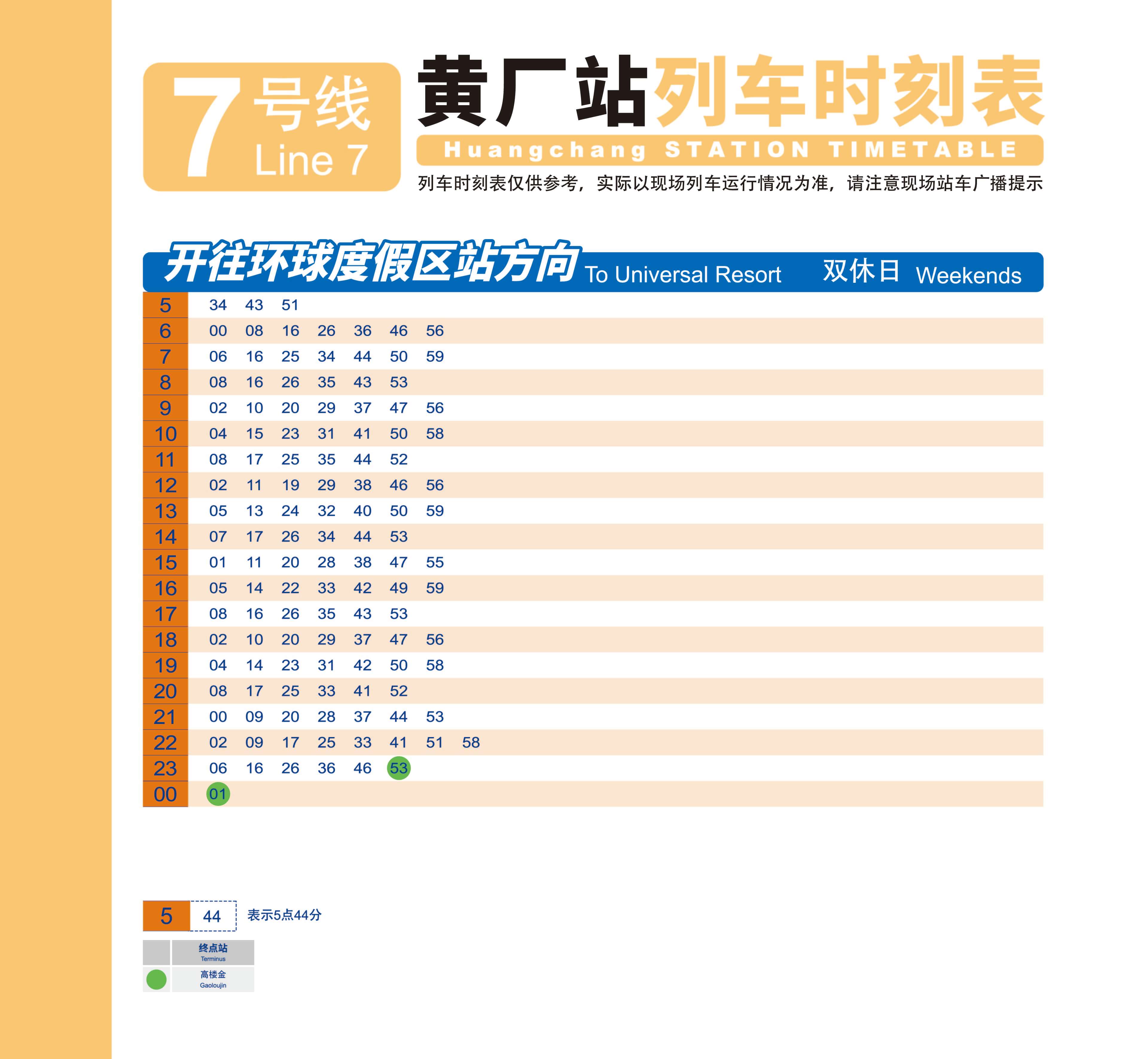 7号线 北京西站—环球度假区首车 5:34末车 23:46末车终点高楼金 0:017号线 环球度假区—北京西站首车 5:30末车 23:20