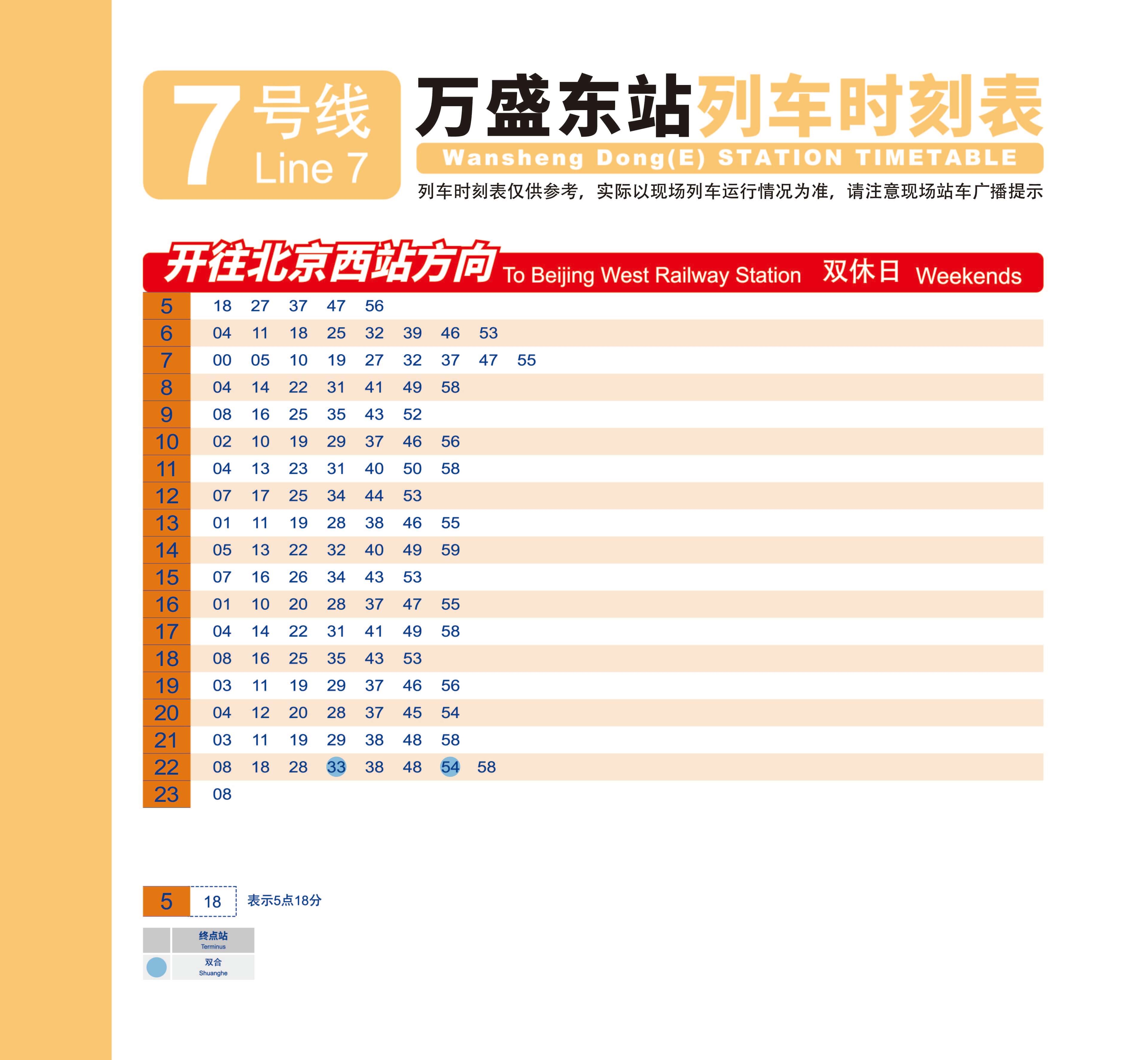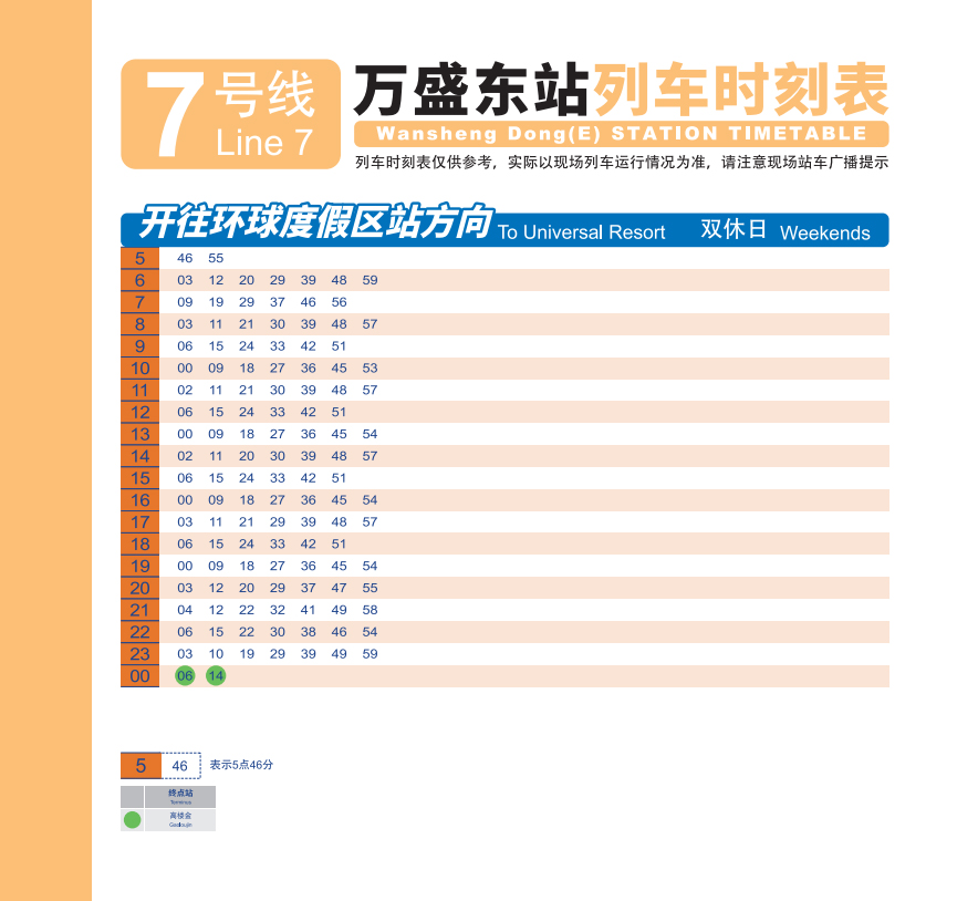 7号线 北京西站—环球度假区首车 5:46末车 23:59末车终点高楼金 0:147号线 环球度假区—北京西站首车 5:18末车 23:08