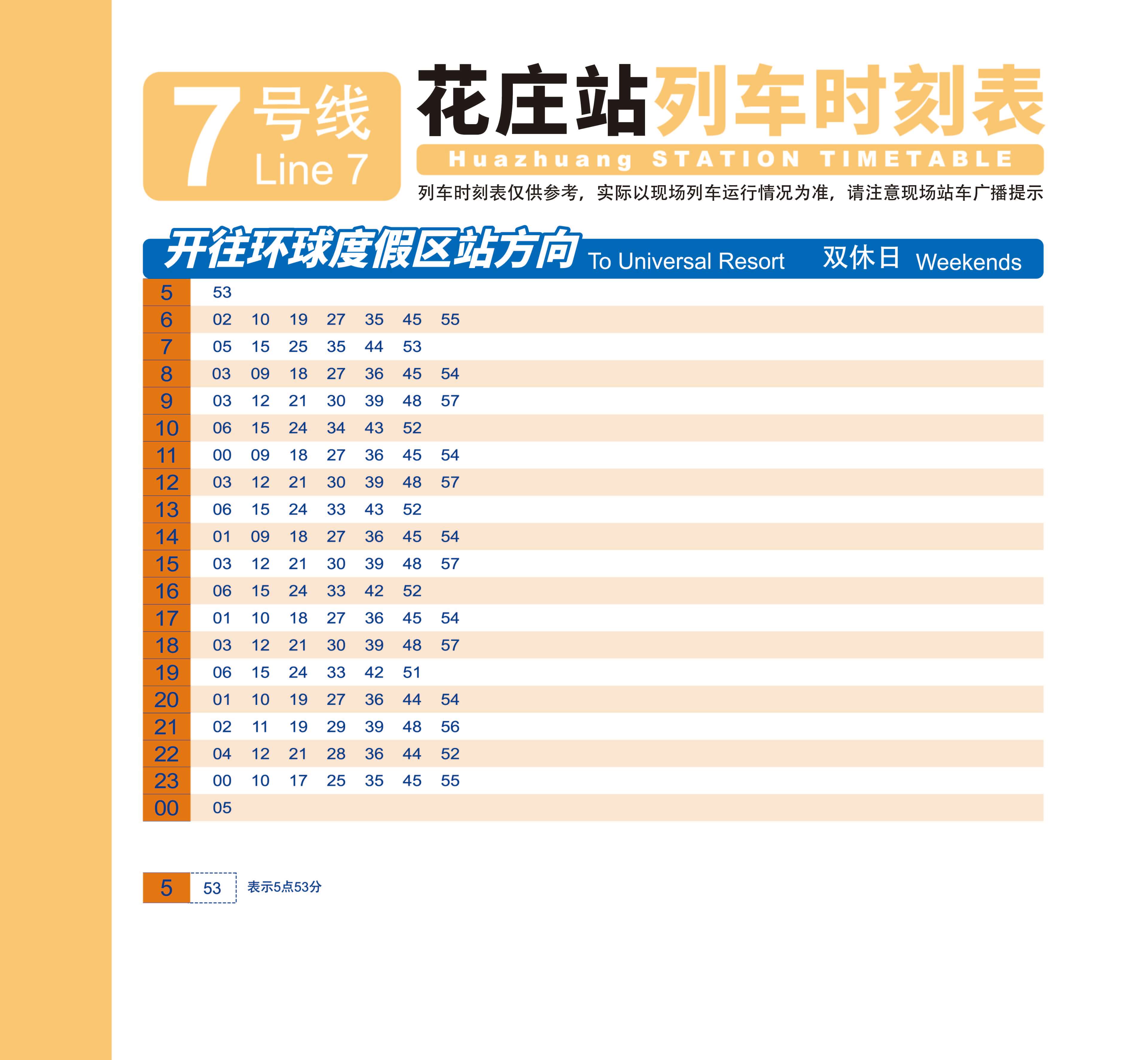 7号线 北京西站—环球度假区首车 5:53末车 0:05末车终点高楼金 ——7号线 环球度假区—北京西站首车 5:12末车 23:02