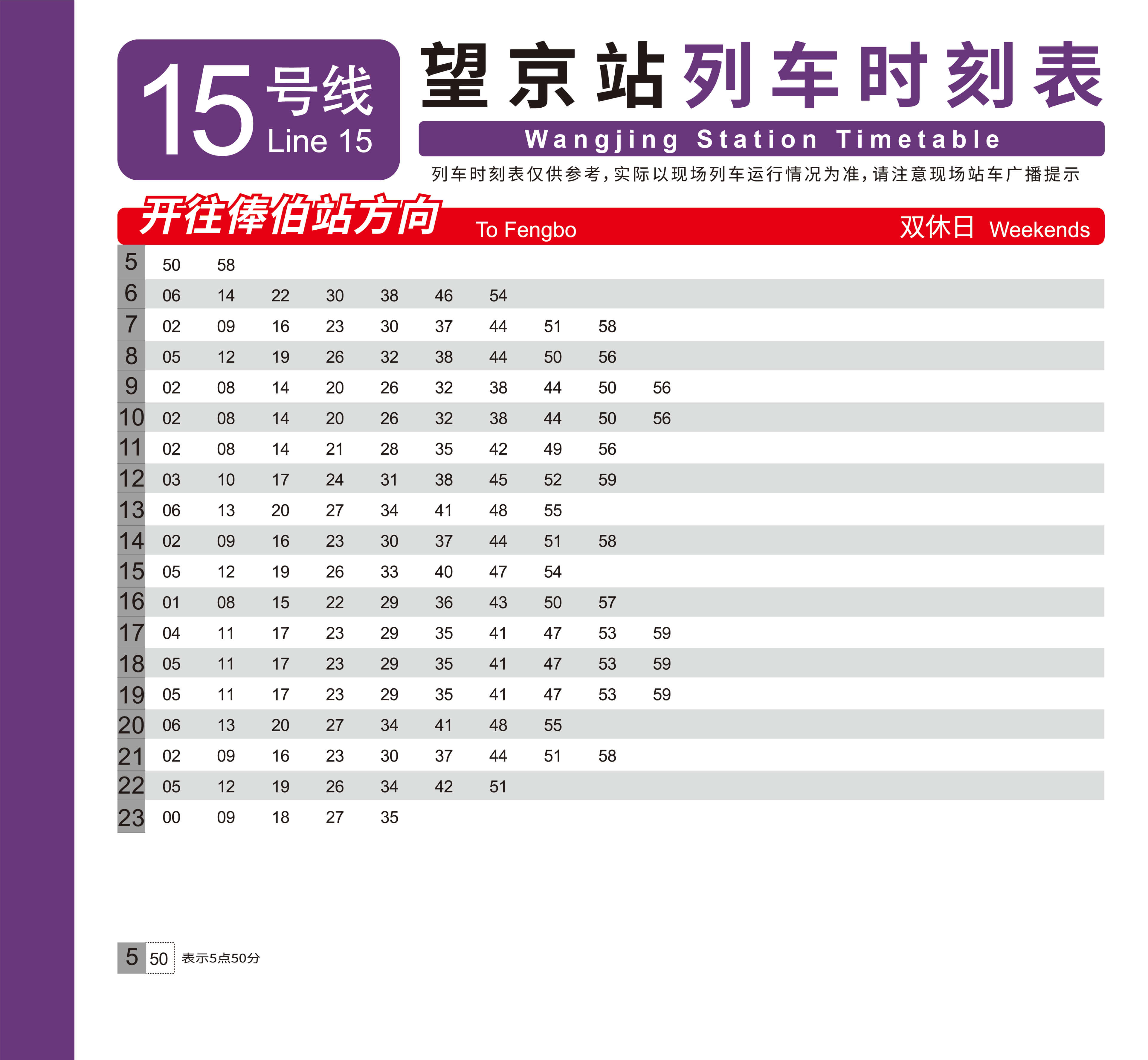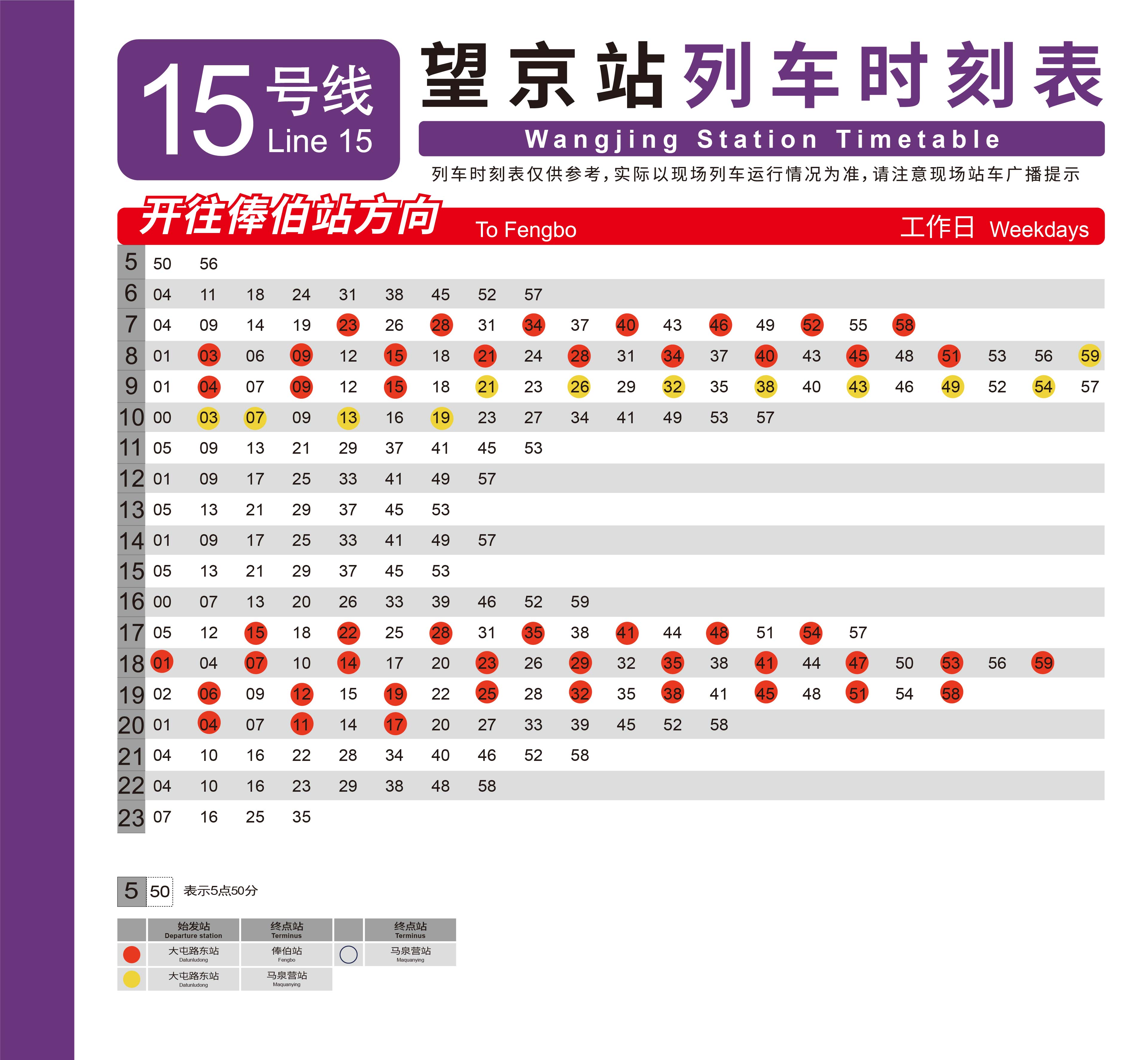 15号线 清华东路西口—俸伯首车 5:50末车 23:3515号线 俸伯—清华东路西口首车 5:03末车 22:48末车(马泉营) ——