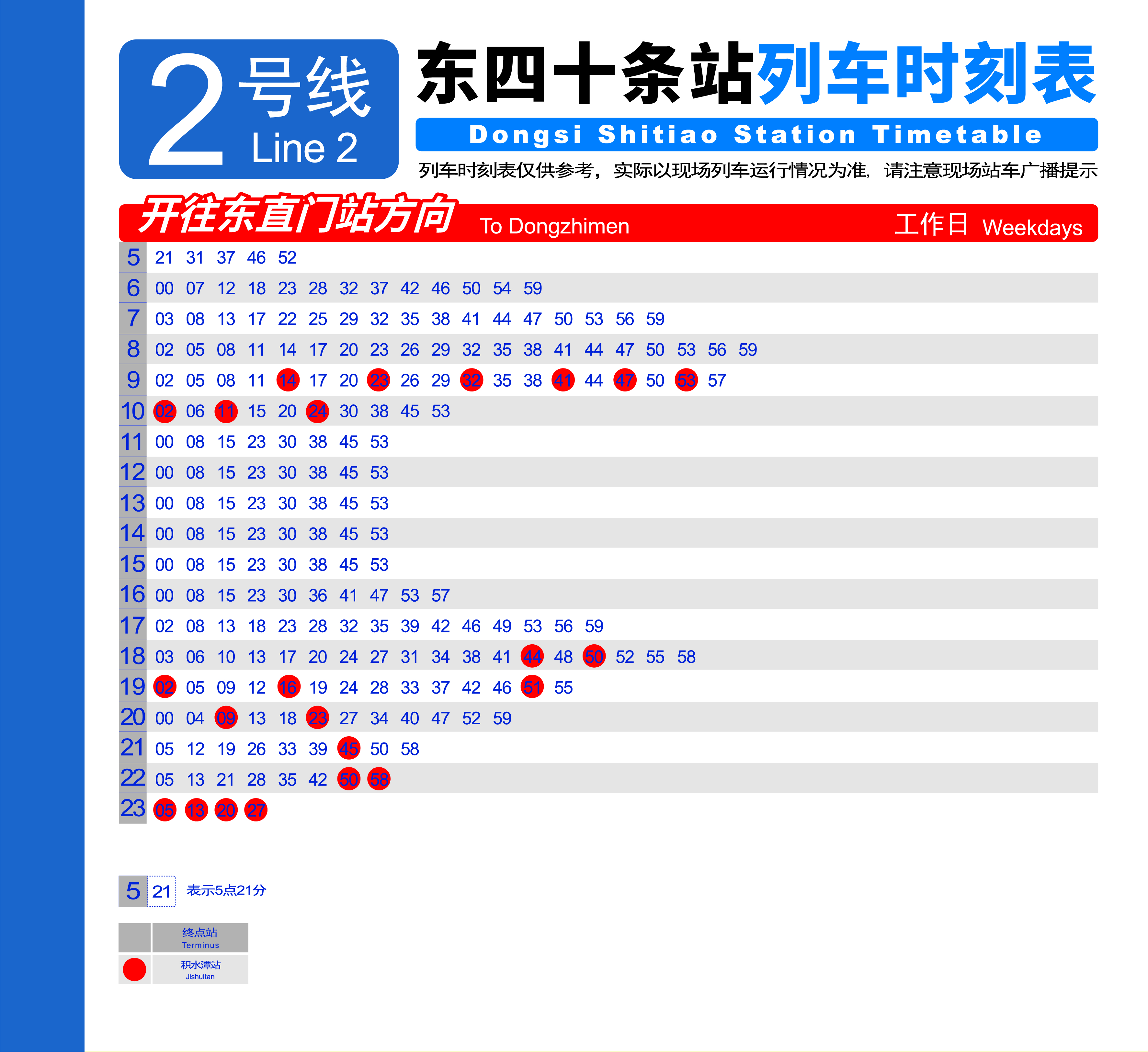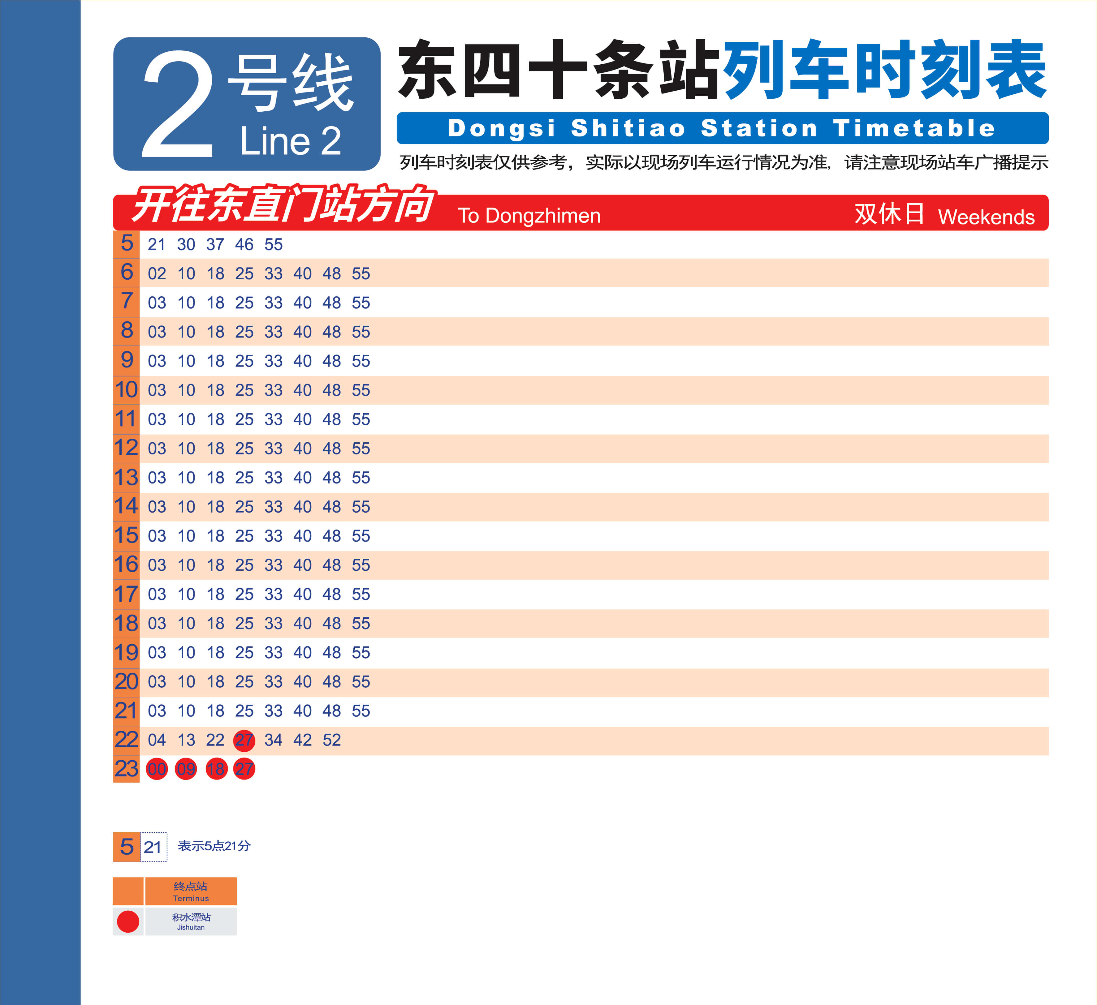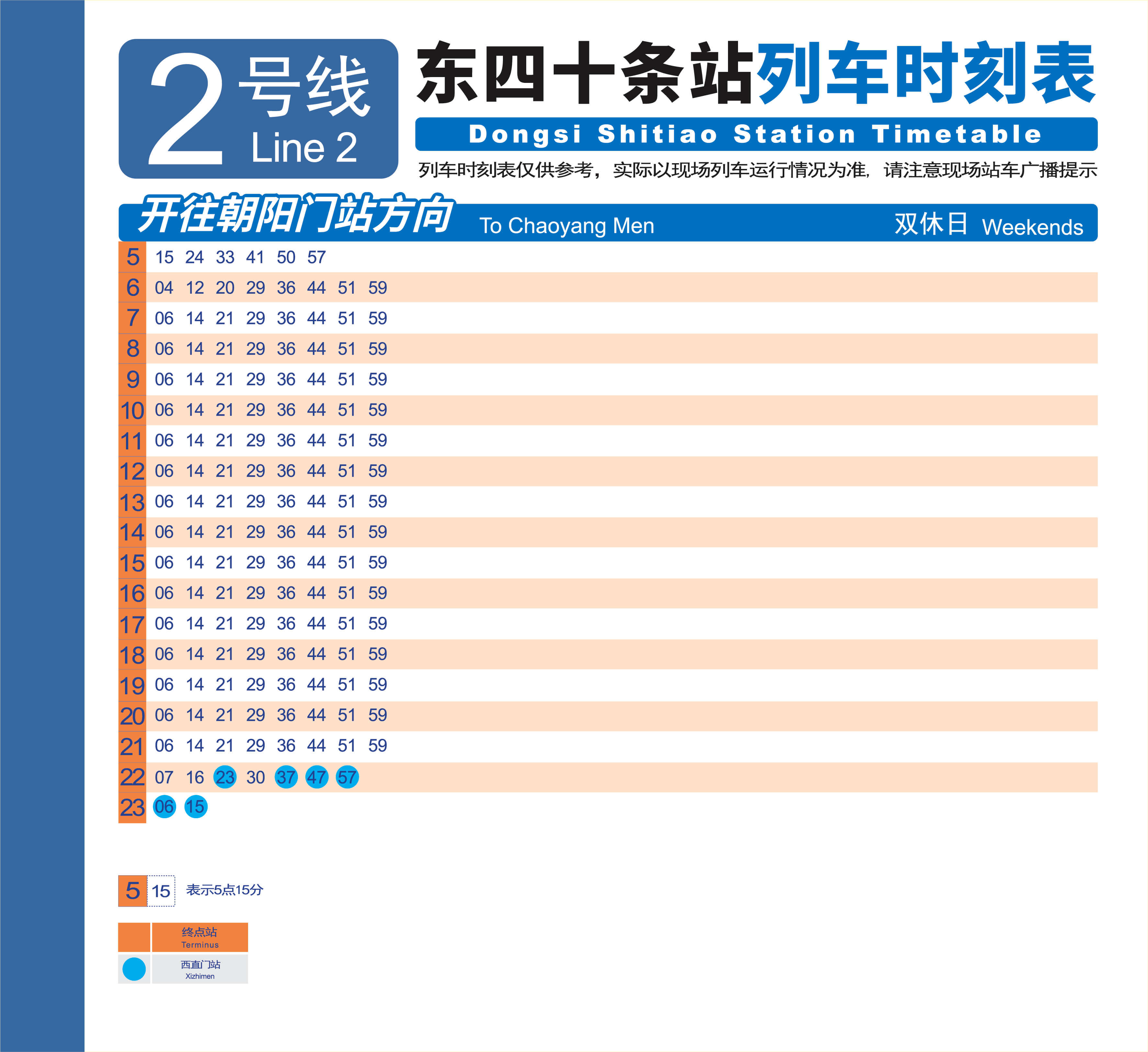 2号线 西直门—复兴门—东直门—西直门(外环)首车 5:21末车 22:42末车终点积水潭 23:272号线 积水潭—东直门—复兴门—积水潭(内环)首车 5:15末车 22:30末车终点西直门 23:15