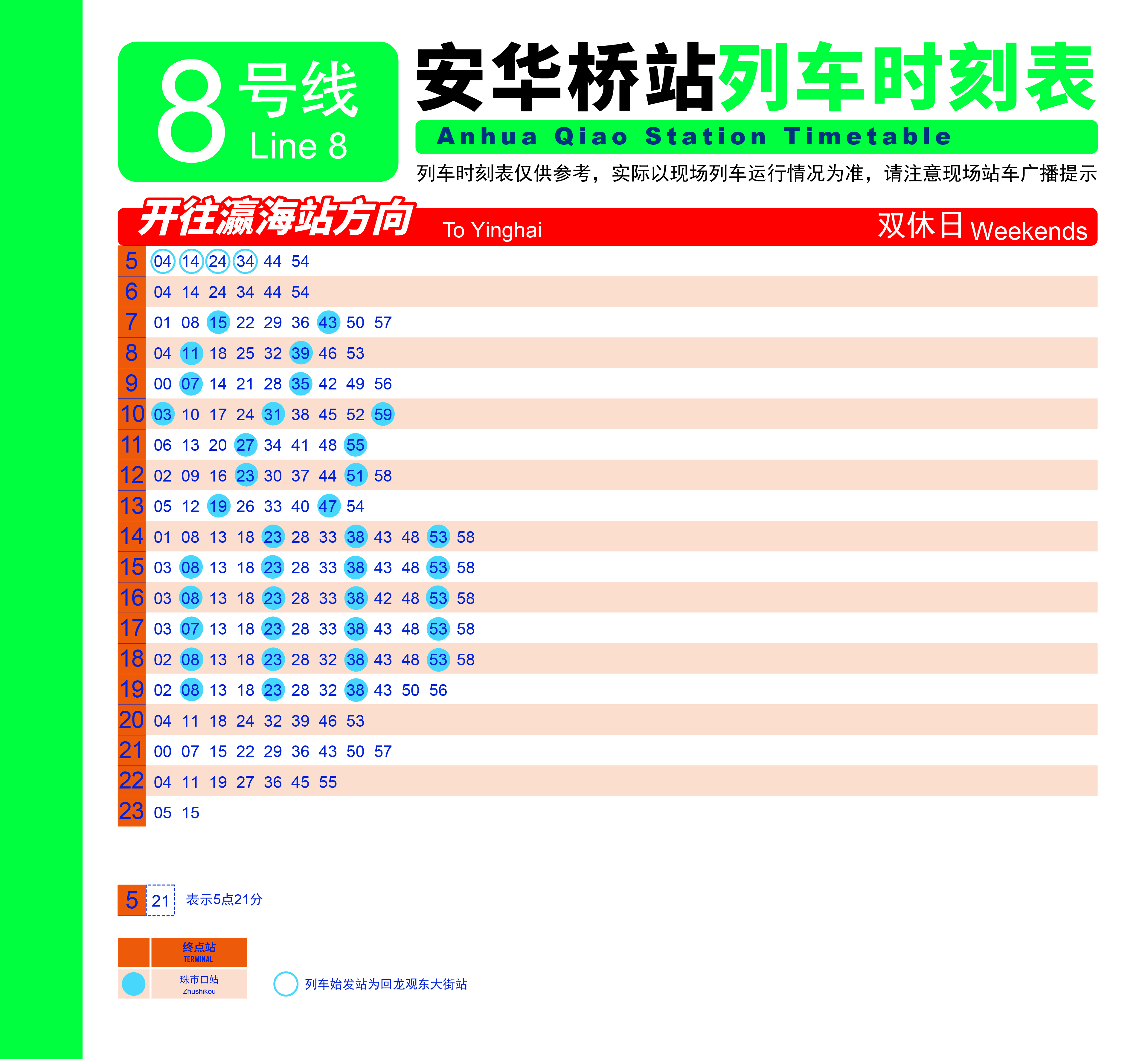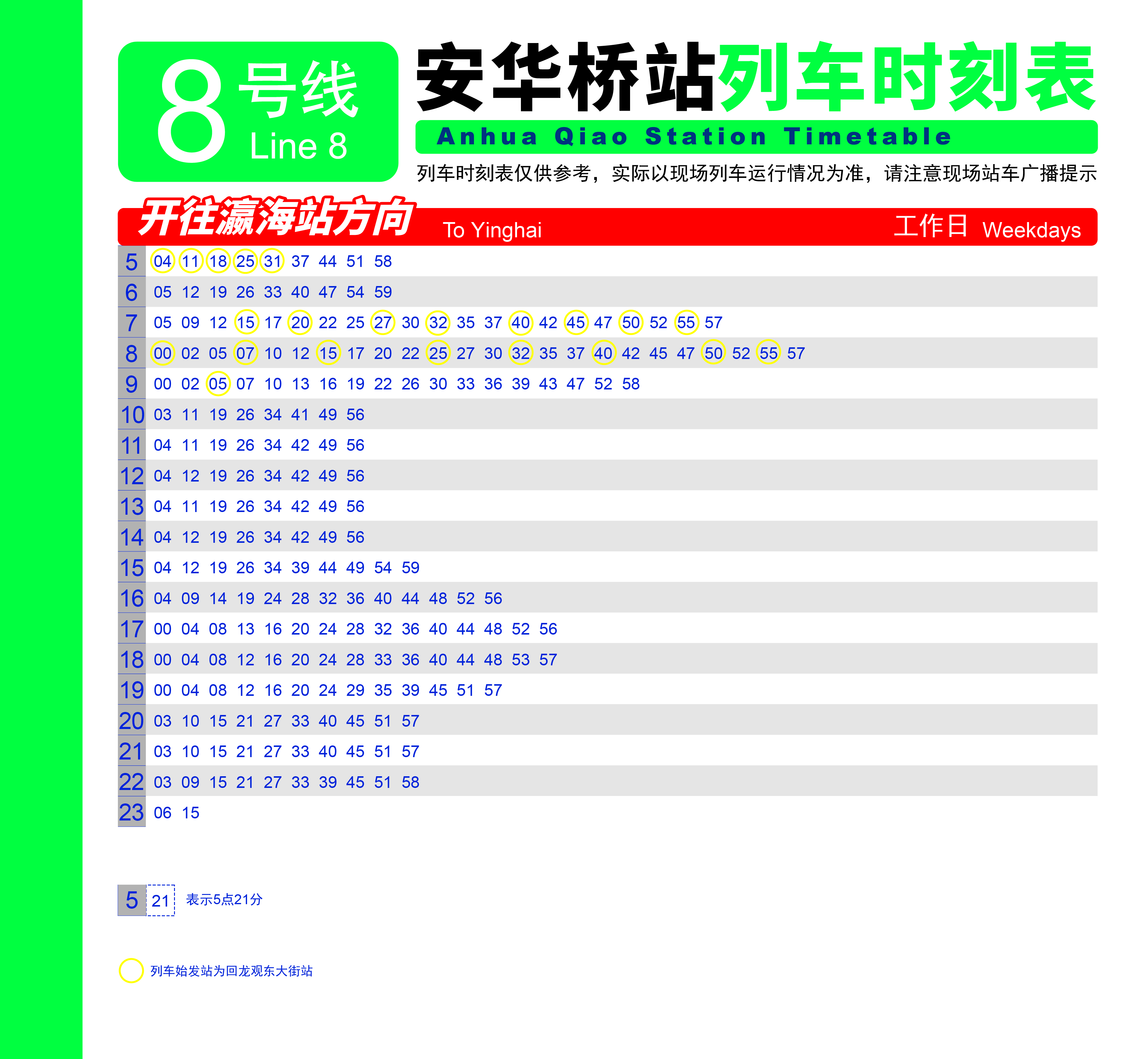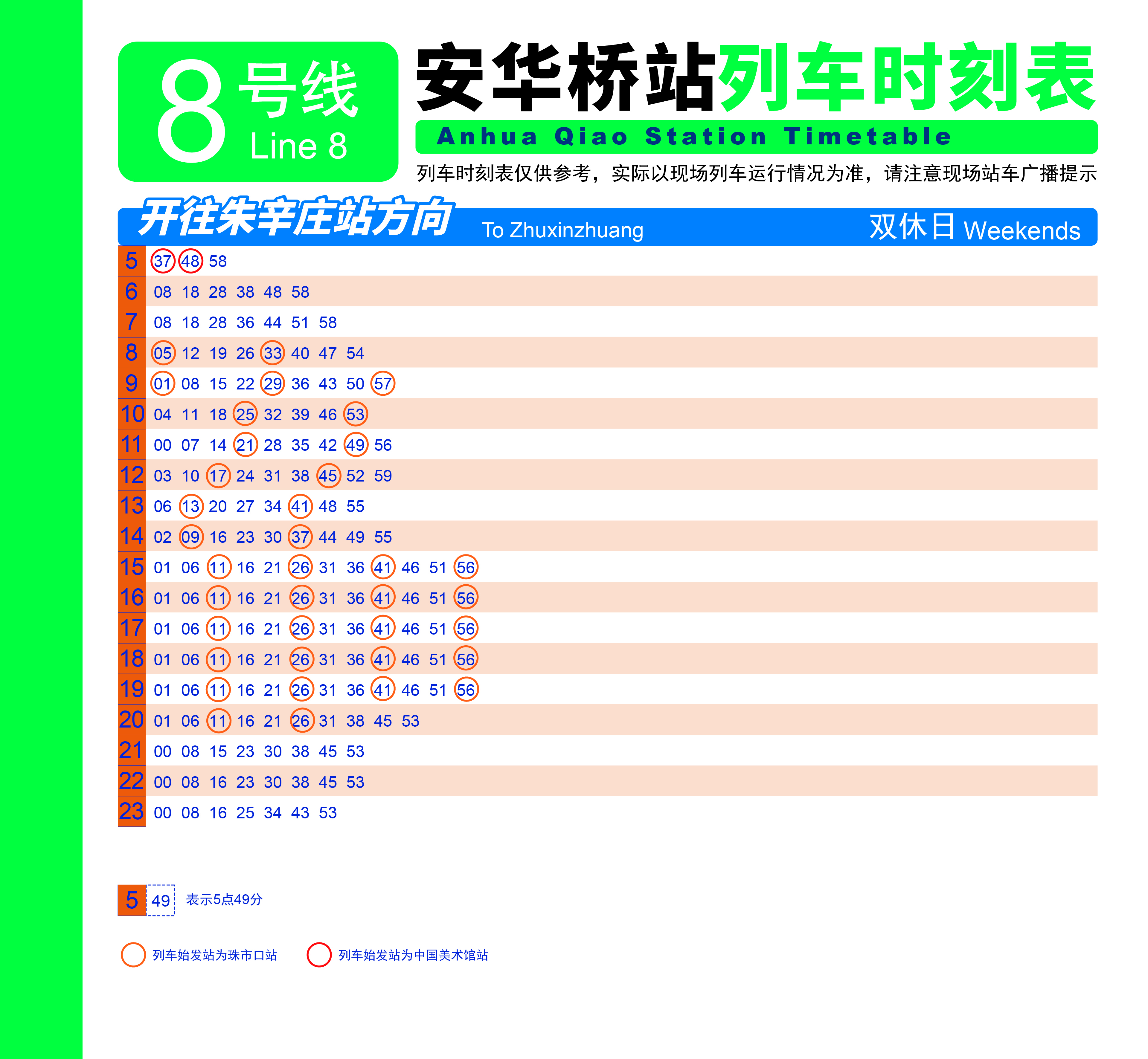 8号线 朱辛庄—瀛海首车 5:04末车 23:158号线 瀛海—朱辛庄首车 5:37末车 23:53