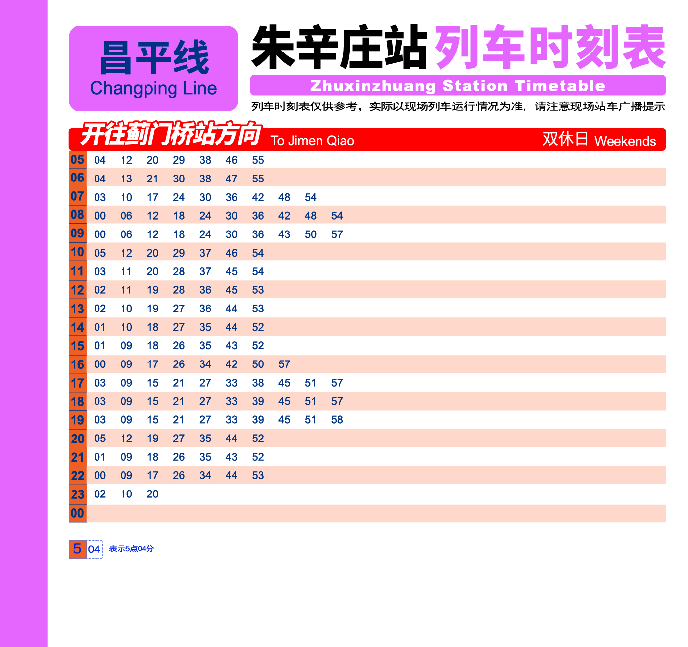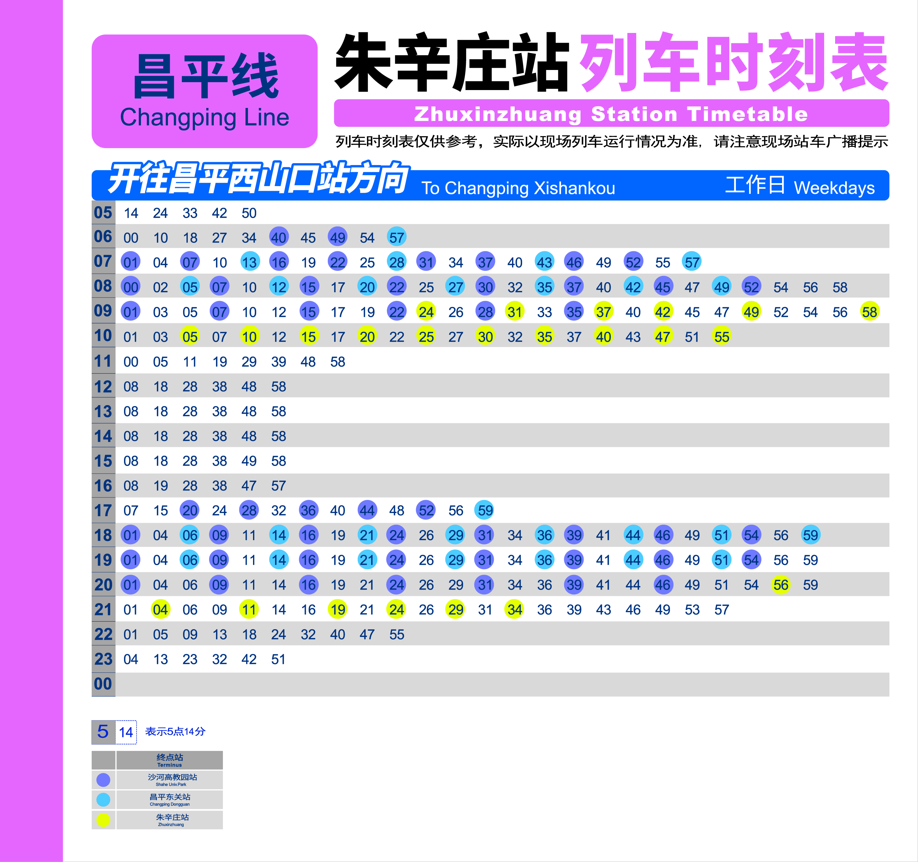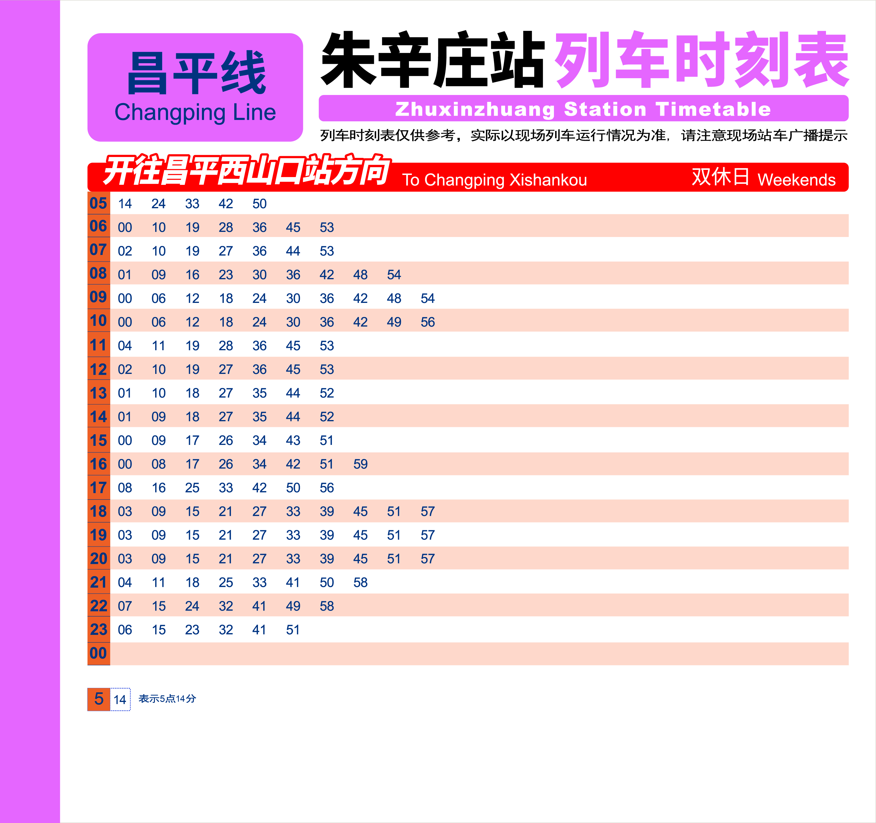 昌平线 昌平西山口—蓟门桥首车 5:04末车(全程) 23:20末车(朱辛庄) ——昌平线 蓟门桥—昌平西山口首车 5:14末车 23:51