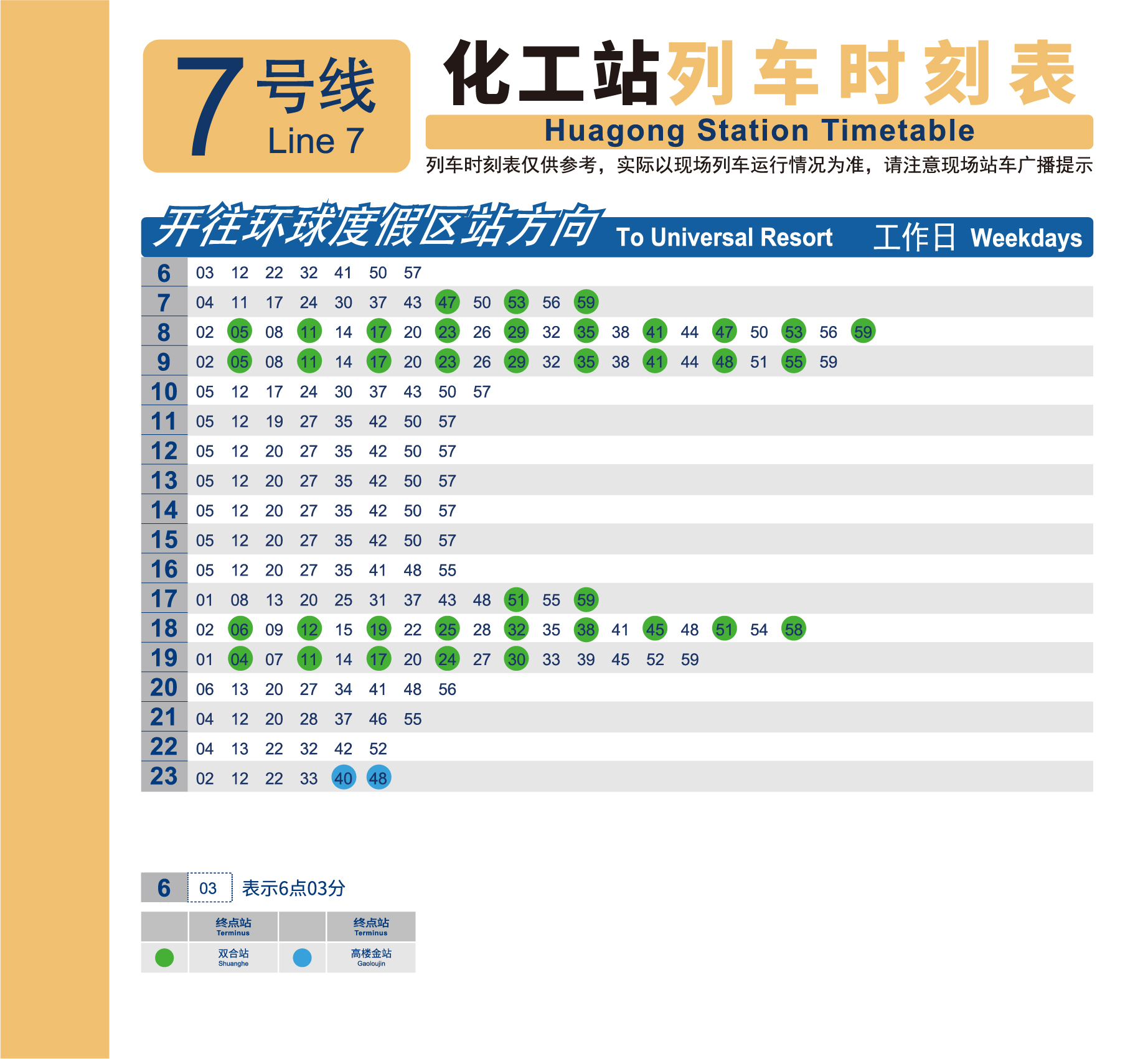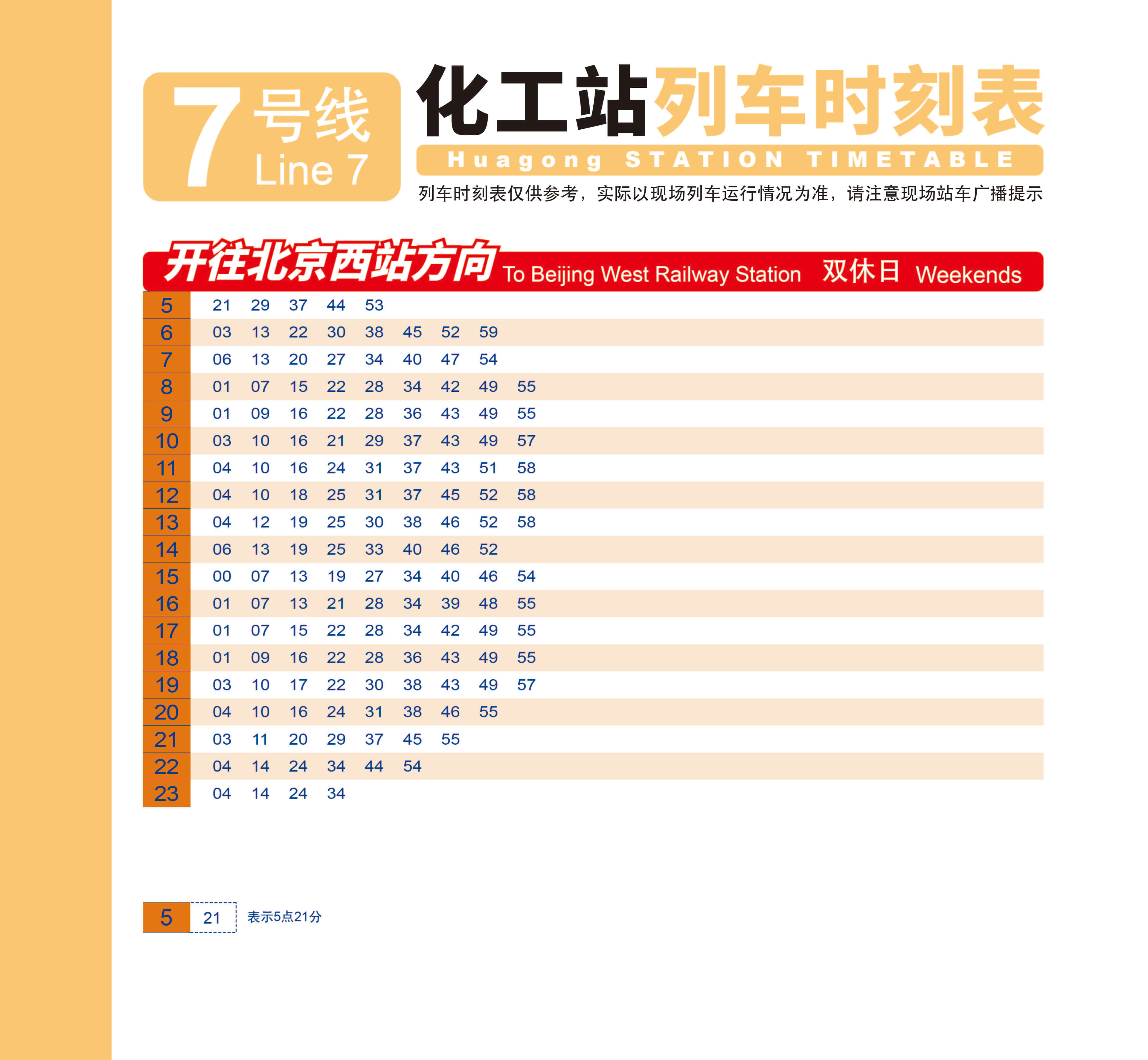 7号线 北京西站—环球度假区首车 6:03末车 23:33末车终点高楼金 23:487号线 环球度假区—北京西站首车 5:21末车 23:34