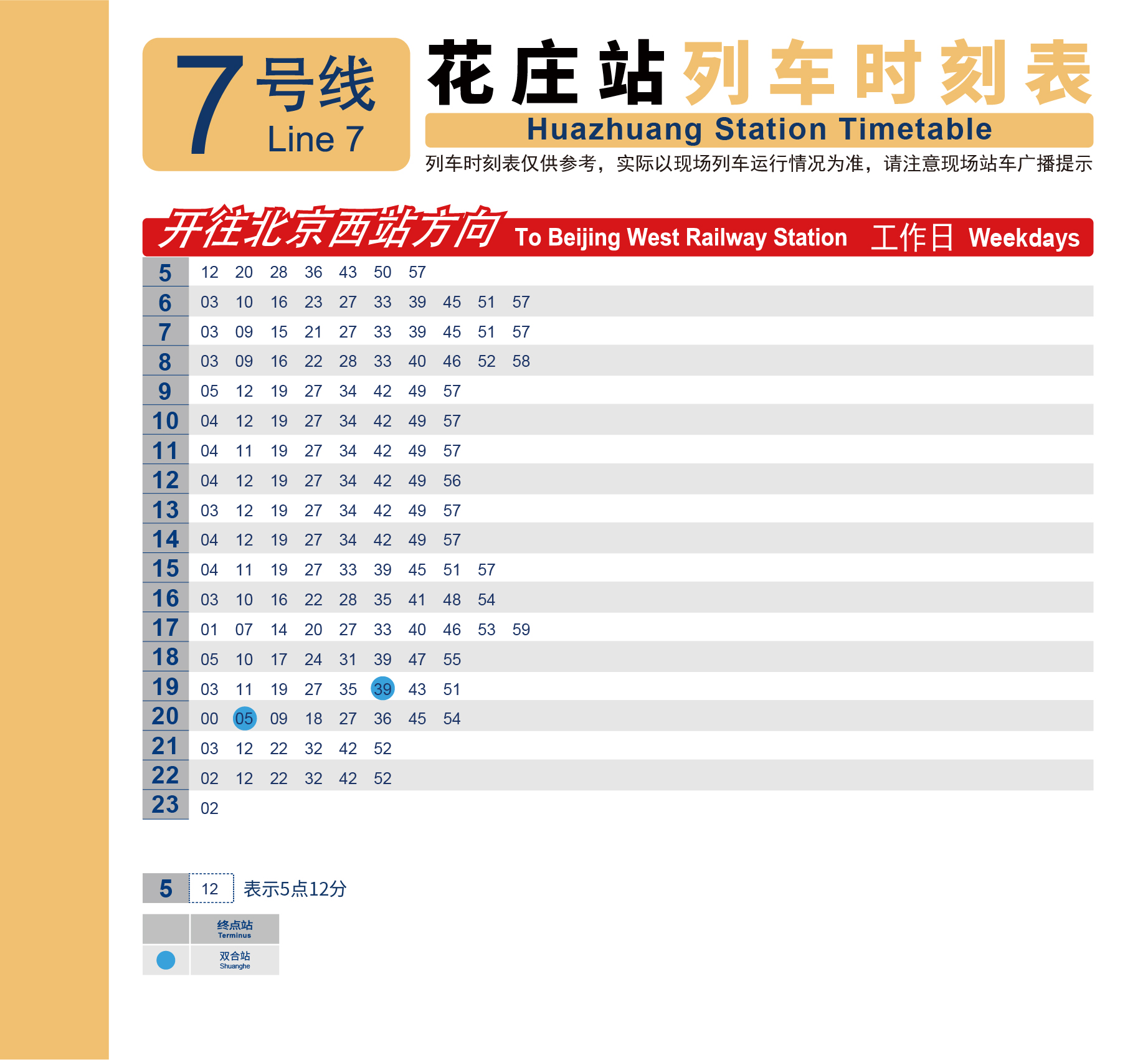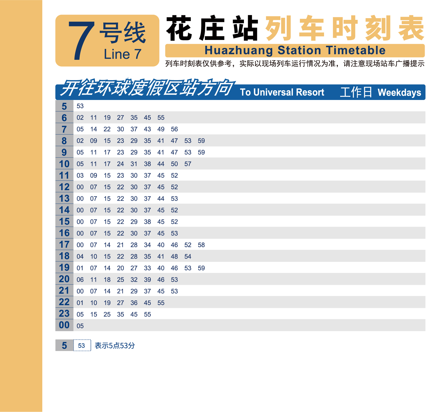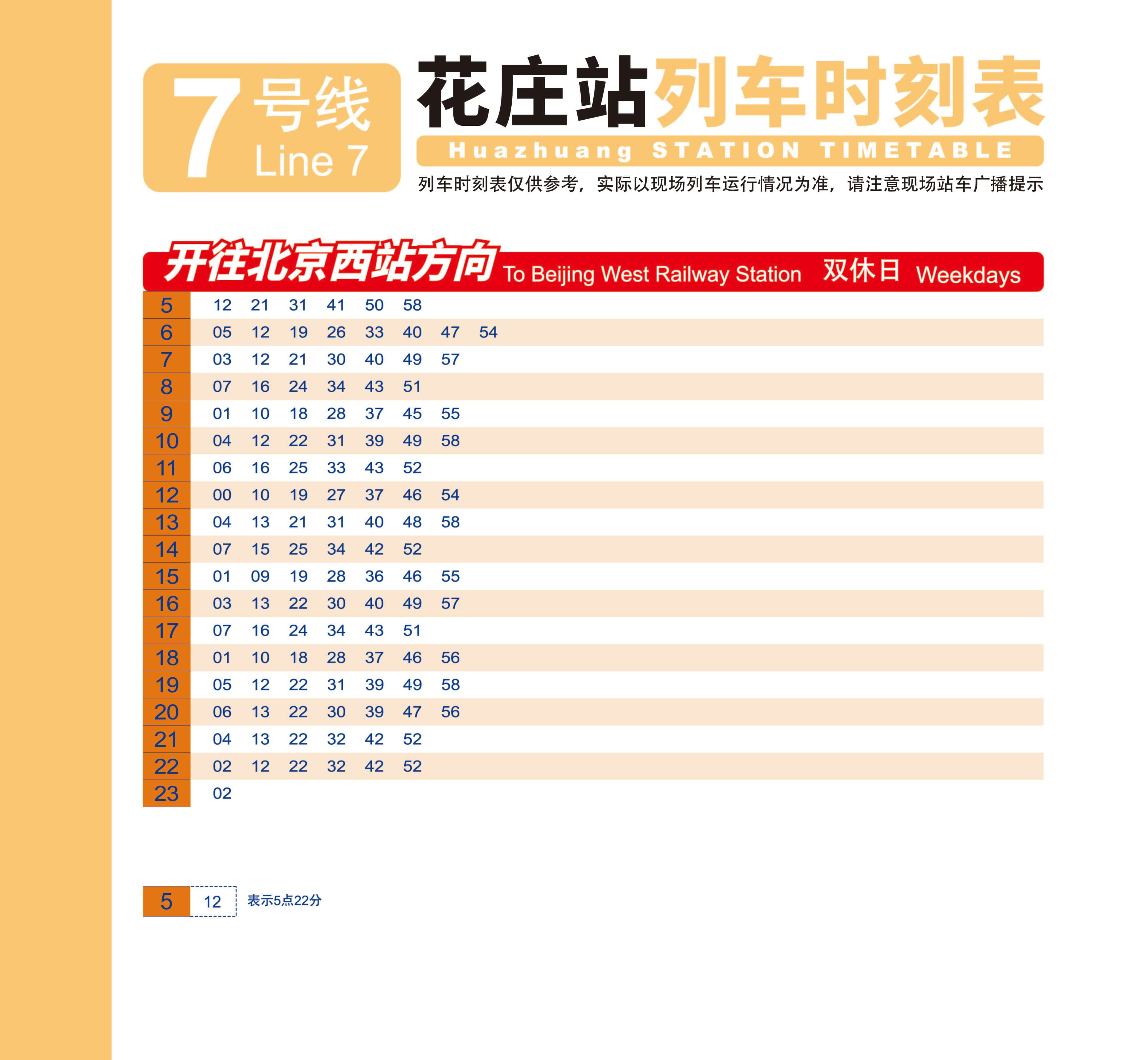 7号线 北京西站—环球度假区首车 5:53末车 0:05末车终点高楼金 ——7号线 环球度假区—北京西站首车 5:12末车 23:02